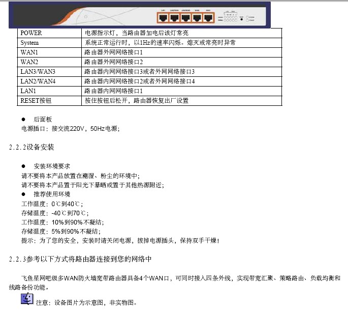 1楼 华军网友 2015-09-11 00:15:07飞鱼星VOLANS-5100路由器使用说明书界面设计很容易上手,功能很丰富,本人极力推荐!