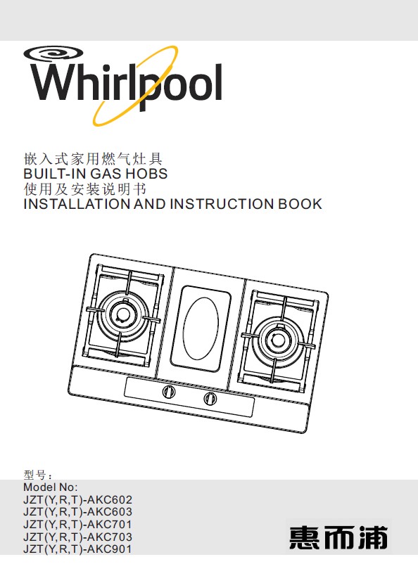 惠而浦 JZT-AKC602不锈钢燃气灶 使用说明书