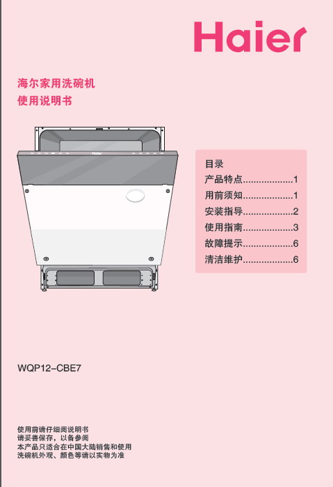 3楼 华军网友 2013-09-08 03:37:15海尔 WQP12-CBE7家用洗碗机 使用说明书功能全面,使用也挺方便的。