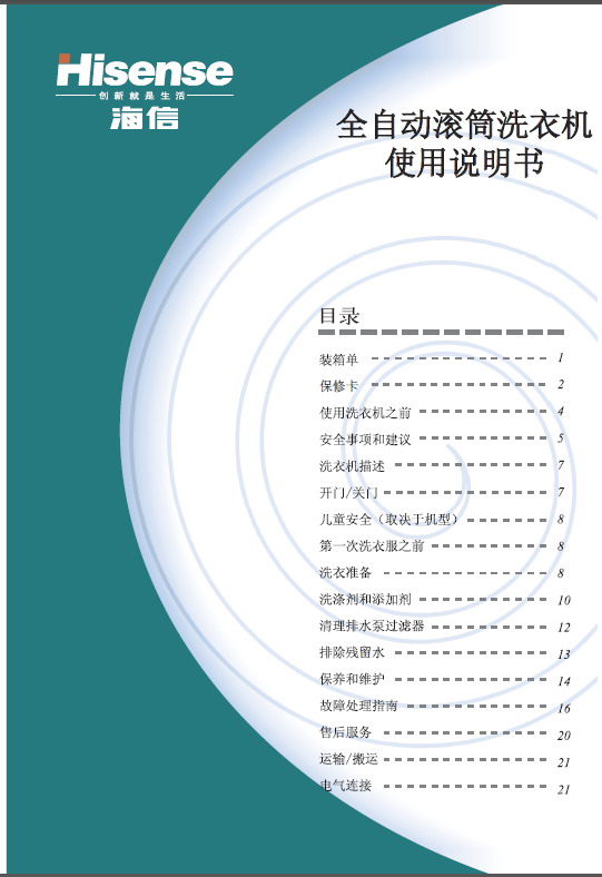 海信 XQG52-1020滚筒洗衣机 使用说明书