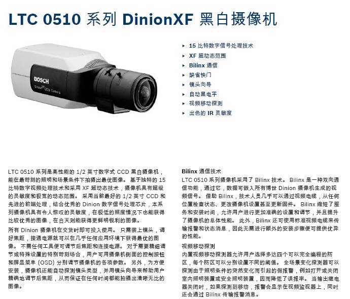 BOSCH LTC 0510 系列 DinionXF 黑白摄像机说明书评论