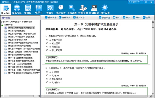 自考00141《发展经济学》易考模考[高频考题]软件
