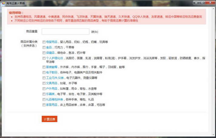 2楼 华军网友 2013-11-18 15:01:41海淘运费计算器软件非常好用,下载速度很快,很方便!