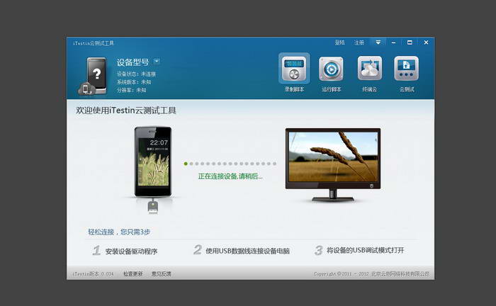 支持在移动终端设备上记录操作行为、生成脚本文件,在终端设备上反复回放并记录回放结果。iTestin还支持将录制好的脚本在Testin真机云测试平台进行大批量终端的回放验证。