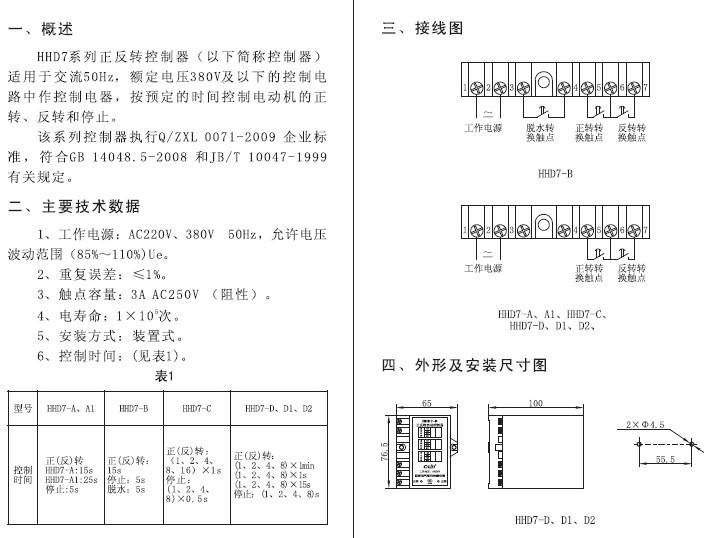 欣灵HHD7-D1(JZF-07秒)正反转控制器说明书