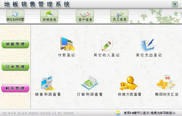 1楼 华军网友 2020-04-29 15:27:15宏达地板销售管理系统 绿色版界面设计很容易上手,功能很丰富,本人极力推荐!