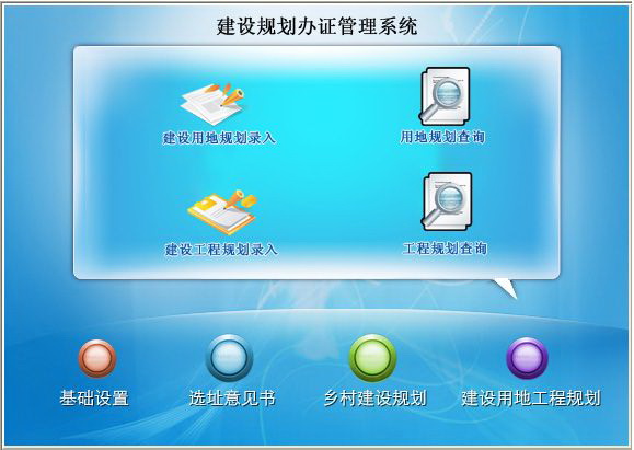 基础设置:发动机关、项目名称、用地性质;选址意见书:编辑于管路、多项查询;乡村建设规划:乡村建设规划、多项查询;建设用地工程规划:建设用地工程规划、多项查询。