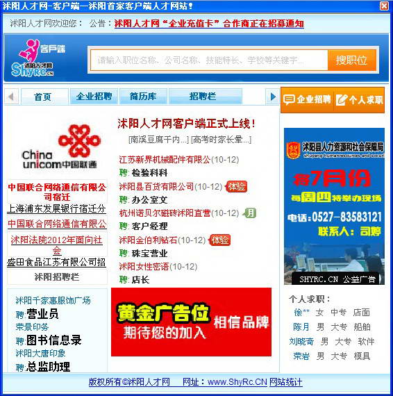 3楼 华军网友 2019-11-21 13:13:13沭阳搜才网2013客户端希望可以越做越好,加油!