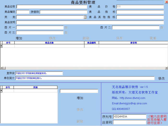 1楼 华军网友 2018-05-23 08:54:08无名商品展示软件很好用,谢谢啦!!