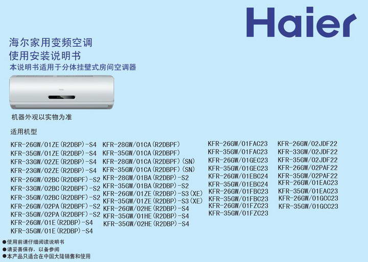 海尔KFR-35GW/01CA(R2DBPF)(SN)空调使用安装说明书
