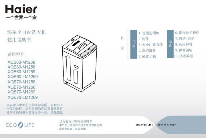 3楼 华军网友 2015-02-05 08:08:53海尔XQB70-M1269洗衣机使用说明书功能全面,使用也挺方便的。