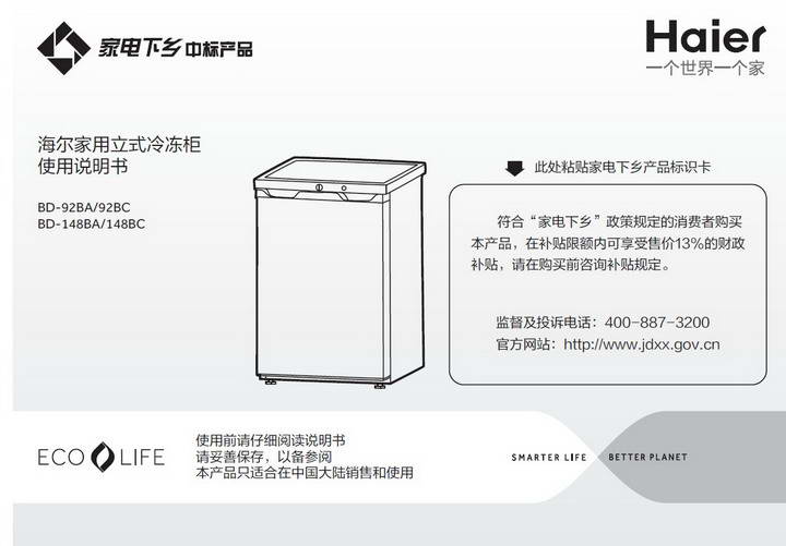 海尔BD-148BC冷柜使用说明书评论
