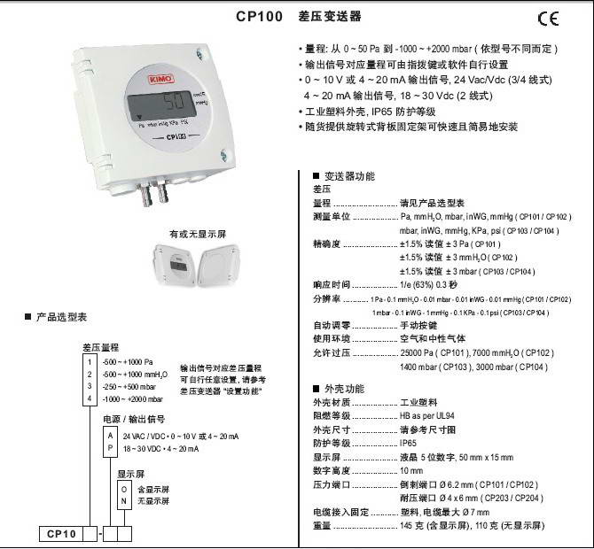 法国KIMO品牌CP102-PN微差压变送器说明书