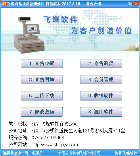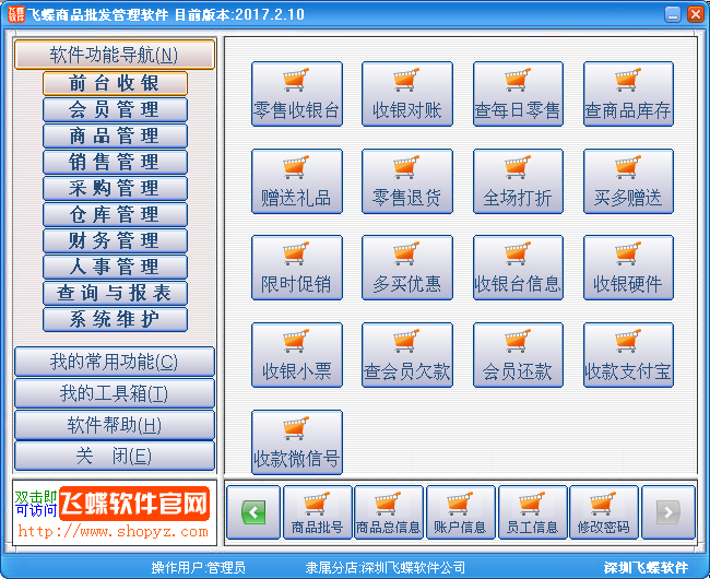 《飞蝶商品批发管理软件》是一款专门针对商品批发而开发的收银管理软件,软件整合了销售管理(批发销售)、采购管理、仓库管理、财务管理、人事管理、商品管理、零售收银、会员管理、查询与报表、系统维护、短信群发等功能,协助您轻松经营管理。