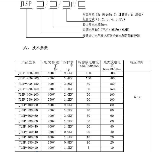 金力JLSP-400/100型浪涌保护器使用说明书评论
