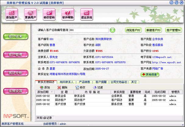 对比之下,美萍客户管理系统做的是很不错的,不仅仅是会员管理,他们进销存,餐饮等各方面都性价比非常的高,大家自行下载即可。