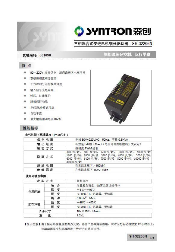 森创SH-32206N三相混合式步进电机驱动器说明书评论
