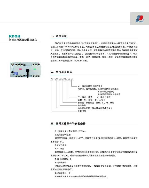 人民电器RDQH智能双电源自动转换开关说明书评论