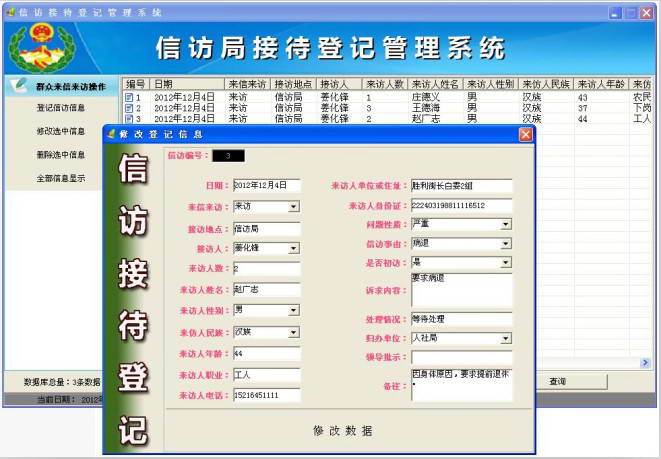 2楼 华军网友 2015-02-13 05:49:48信访登记管理软件界面设计很容易上手,功能很丰富,本人极力推荐!