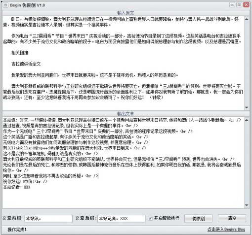 2楼 华军网友 2019-10-11 10:04:27Begin文章伪原创工具超级棒!点一亿个赞!!!