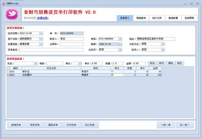 1楼 华军网友 2017-12-05 19:05:35金财鸟销售送货单批量打印软件很好用,谢谢啦!!