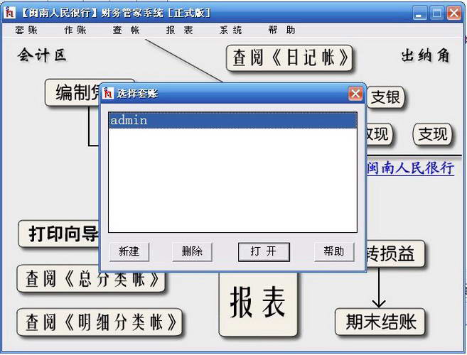 当您开始使用本系统时,您首先要做的就是根据您单位的实际情况开设套账。您可以在选择套账窗口单击“新增”用来新建或增加一个新的套账。