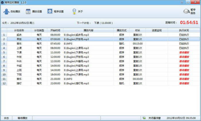 2楼 华军网友 2021-03-06 13:26:15琦玮定时播音界面设计很容易上手,功能很丰富,本人极力推荐!