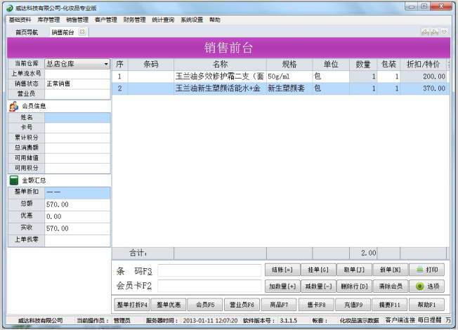 威达化妆品销售管理软件