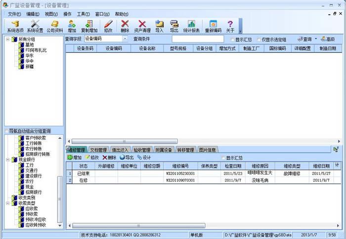 4.设备设置:分组和配件资料在同一界面,所见及所得的树形界面【独家】。
