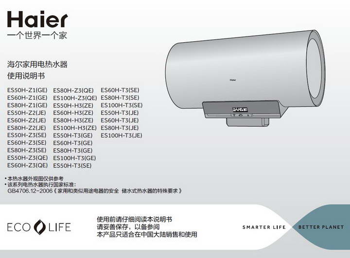 2楼 华军网友 2020-06-30 12:11:49海尔ES50H-T3(JE)电热水器说明书超级棒!点一亿个赞!!!
