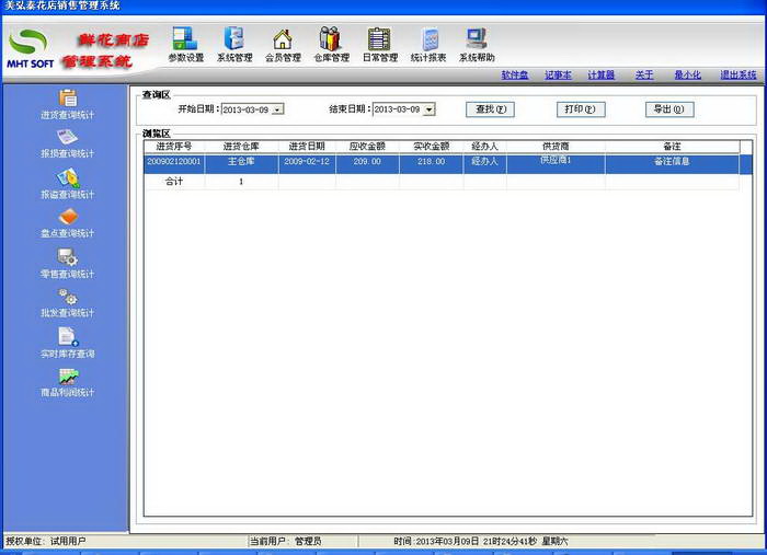3楼 华军网友 2017-09-01 10:12:37美弘泰花店销售管理系统方便实用,很给力,软件非常好用!