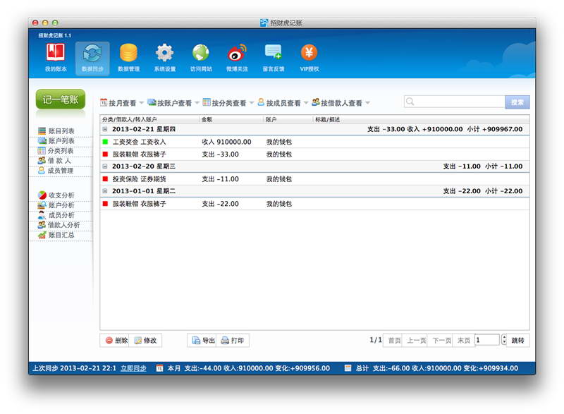2楼 华军网友 2021-08-22 00:31:33聚财虎云记账 For Mac界面设计很容易上手,功能很丰富,本人极力推荐!