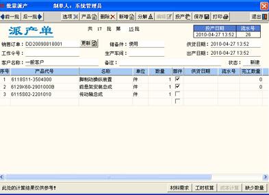 销售管理:根据销售订单可以自动生成批量派产单,批量完工入库后,还可以根据销售订单直接引入销售单实现产品的销售,同时自动生成对客户的应收款明细。为财务部对客户的收款提供依据。