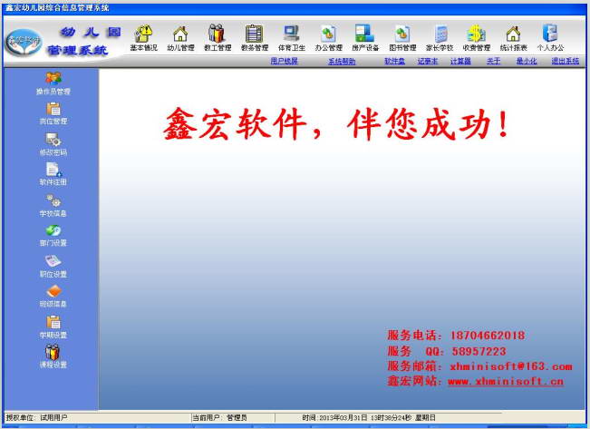 1楼 华军网友 2021-05-31 17:21:18鑫宏幼儿园信息管理系统界面设计很容易上手,功能很丰富,本人极力推荐!