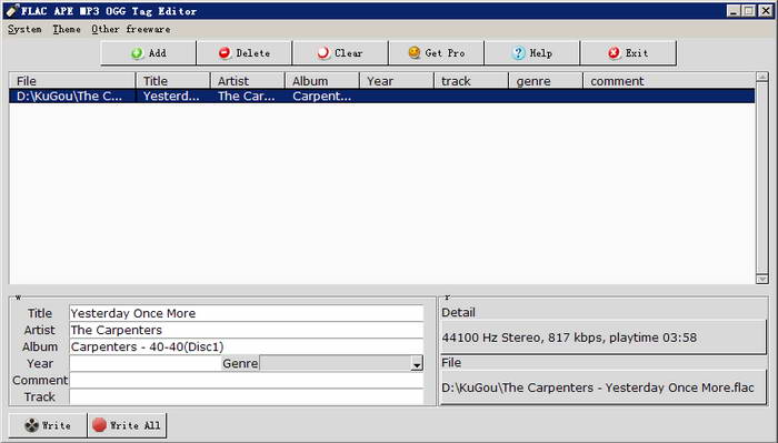 1楼 华军网友 2021-05-20 13:36:29FLAC APE MP3 OGG Tag Editor界面设计很容易上手,功能很丰富,本人极力推荐!