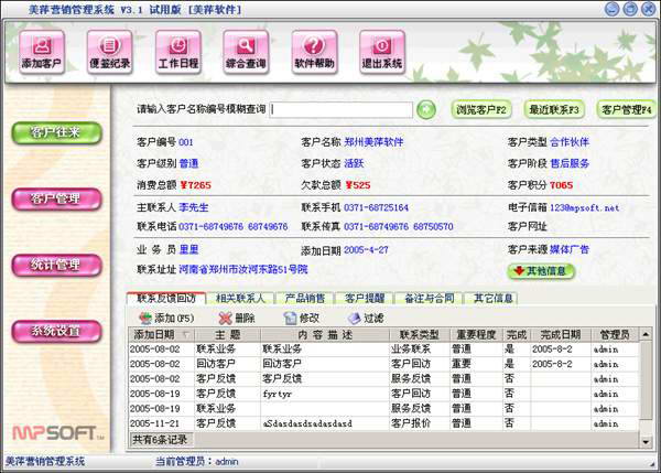 1楼 华军网友 2013-04-26 15:01:52美萍营销管理软件界面设计很容易上手,功能很丰富,本人极力推荐!