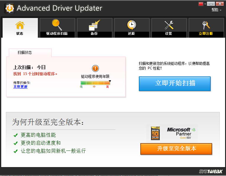 2楼 华军网友 2015-07-17 13:40:01Advanced Driver Updater界面设计很容易上手,功能很丰富,本人极力推荐!