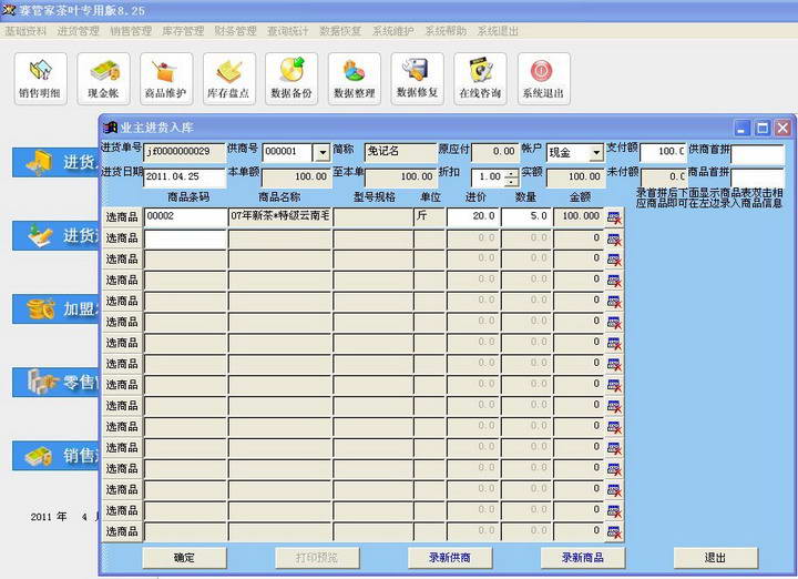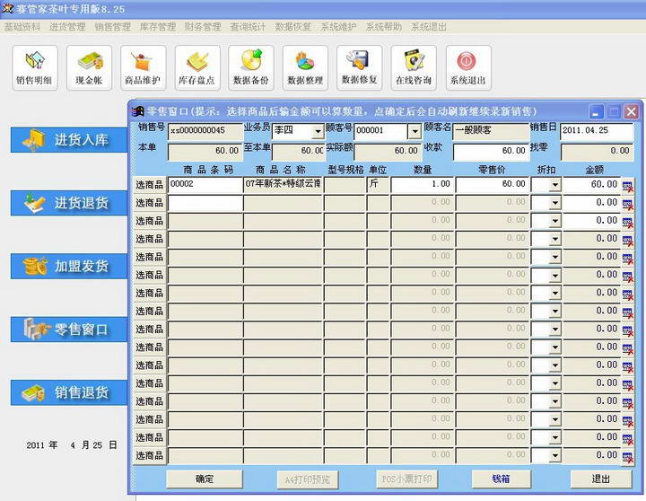 1楼 华军网友 2019-05-18 03:31:49赛管家茶叶专用版界面设计很容易上手,功能很丰富,本人极力推荐!