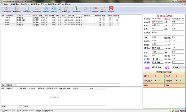 在前台营业子系统中,我们从系统最初的设计上,就以操作快捷、界面条理清晰入手,每一个常用功能都有快捷键,常用的输入都有拼音简码输入。在触摸屏前台营业,我们让每一个功能都可以快捷的使用触摸进行操作。