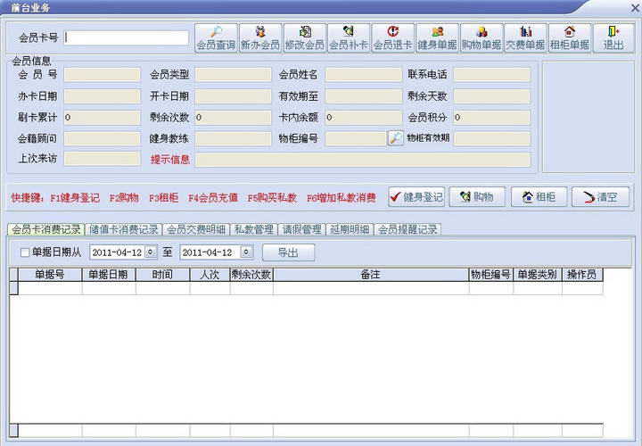 3、可对会员卡进行补卡、退卡、挂失、请假、延期、更换教练、会员续卡等各种操作。
