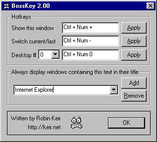 1楼 华军网友 2016-05-02 13:00:40bosskey很好用,谢谢啦!!