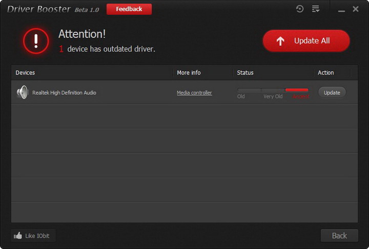 2楼 华军网友 2019-10-25 16:22:22IObit Driver Booster界面设计很容易上手,功能很丰富,本人极力推荐!