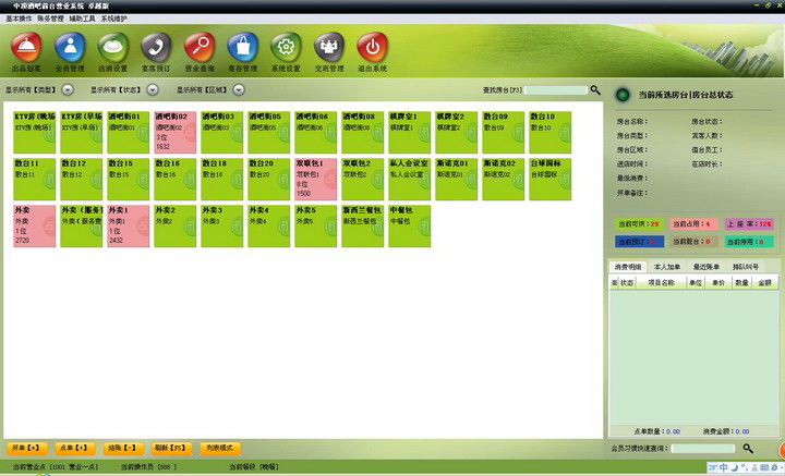 中顶酒吧娱乐管理系统全面革新并明确了酒吧综合管理的概念和范畴,将内部嵌入式计算的准确和即时性与外部网络管理的便捷与灵活性进行了完美的结合,从而使管理者可以更自由、更准确、更便捷地对会员、顾客档案,商品库存,财务状况和其他各种经营情况进行动态追踪管理。针对酒吧经营管理特点设计的最专业的计费、收银、会员、打折、储值、刷卡消费解决方案。系统功能全面,开台、挂帐、结帐简单易学,会员个性化管理自由设定,后台监控、报表统计是您经营管理的最佳助手。系统界面简洁优美,操作直观简单。