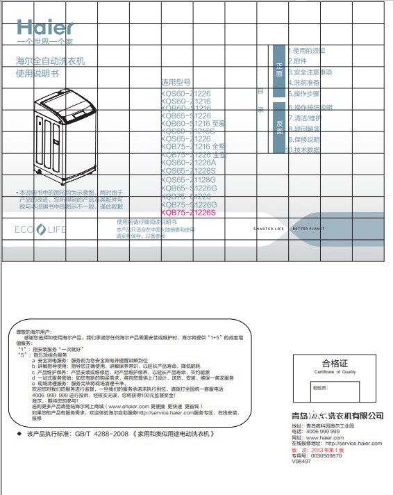 3楼 华军网友 2016-06-26 16:24:48海尔XQB75-Z1226S洗衣机使用说明书希望可以越做越好,加油!