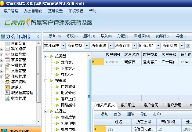 《智赢CRM普及版》是一款小巧实用的客户关系管理系统。软件界面友好美观、功能强大而实用、操作简单易学,轻松完成日常经营管理中的客户管理、客户跟进、办公自动化、人事管理等经营活动。