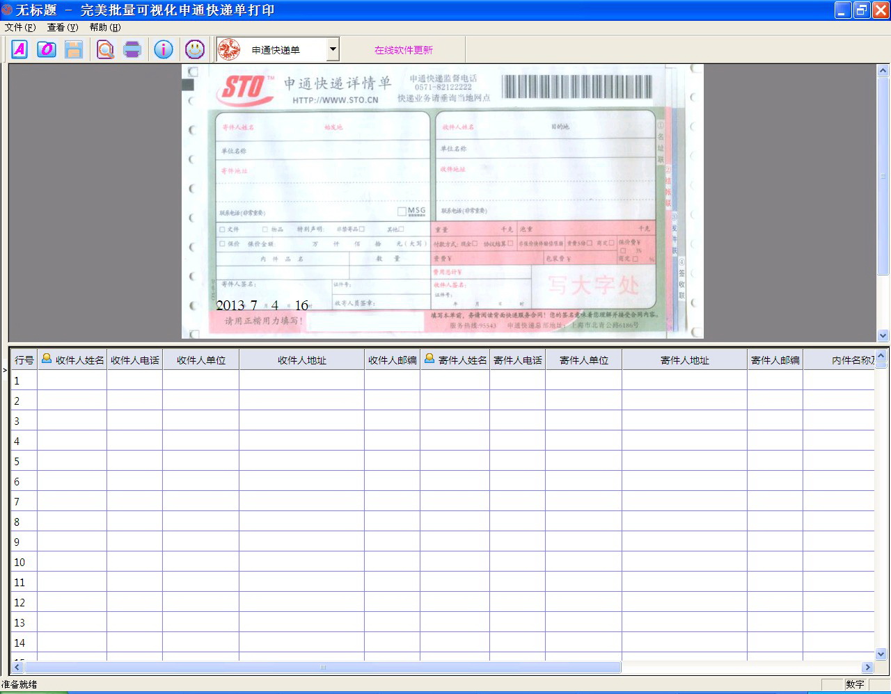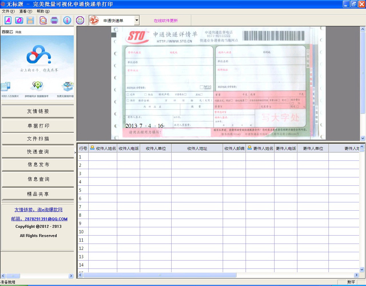 1楼 华军网友 2016-07-25 21:26:52完美批量可视化申通快递单打印免费版很好用,谢谢啦!!