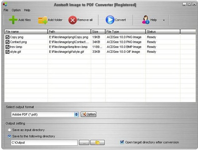 1楼 华军网友 2021-06-26 21:37:41Aostsoft Image to PDF Converter界面设计很容易上手,功能很丰富,本人极力推荐!