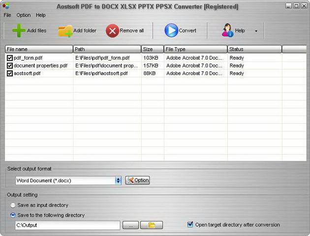 Aostsoft PDF to DOCX XLSX PPTX PPSX Converter