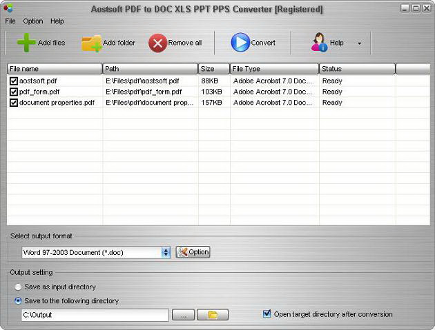 Aostsoft PDF to DOC XLS PPT PPS Converter