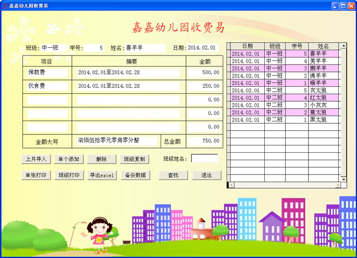 1楼 华军网友 2014-02-23 05:39:45嘉嘉幼儿园收费易界面设计很容易上手,功能很丰富,本人极力推荐!